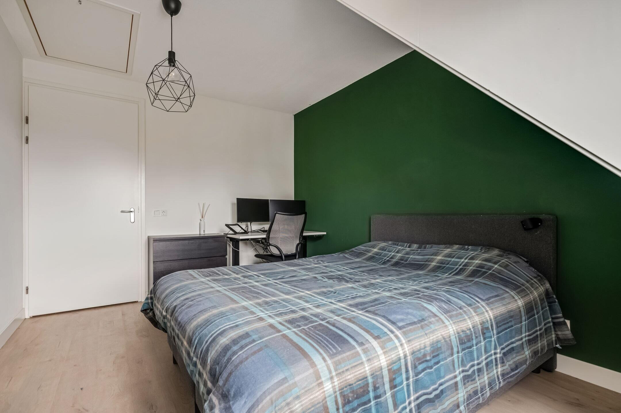 De tweede woonlaag biedt plaats aan twee volwaardige slaapkamers en een nette, complete badkamer. De hoofdslaapkamer is bijzonder ruim en biedt voldoende plaats voor een groot tweepersoonsbed, een werkplek en aanvullende kastruimte. De aanwezige inbouwkasten en draai-kiepramen zorgen voor extra comfort en praktische gebruiksmogelijkheden. De tweede slaapkamer is multifunctioneel en uitstekend geschikt als slaapkamer, thuiswerkplek en/of hobbyruimte.