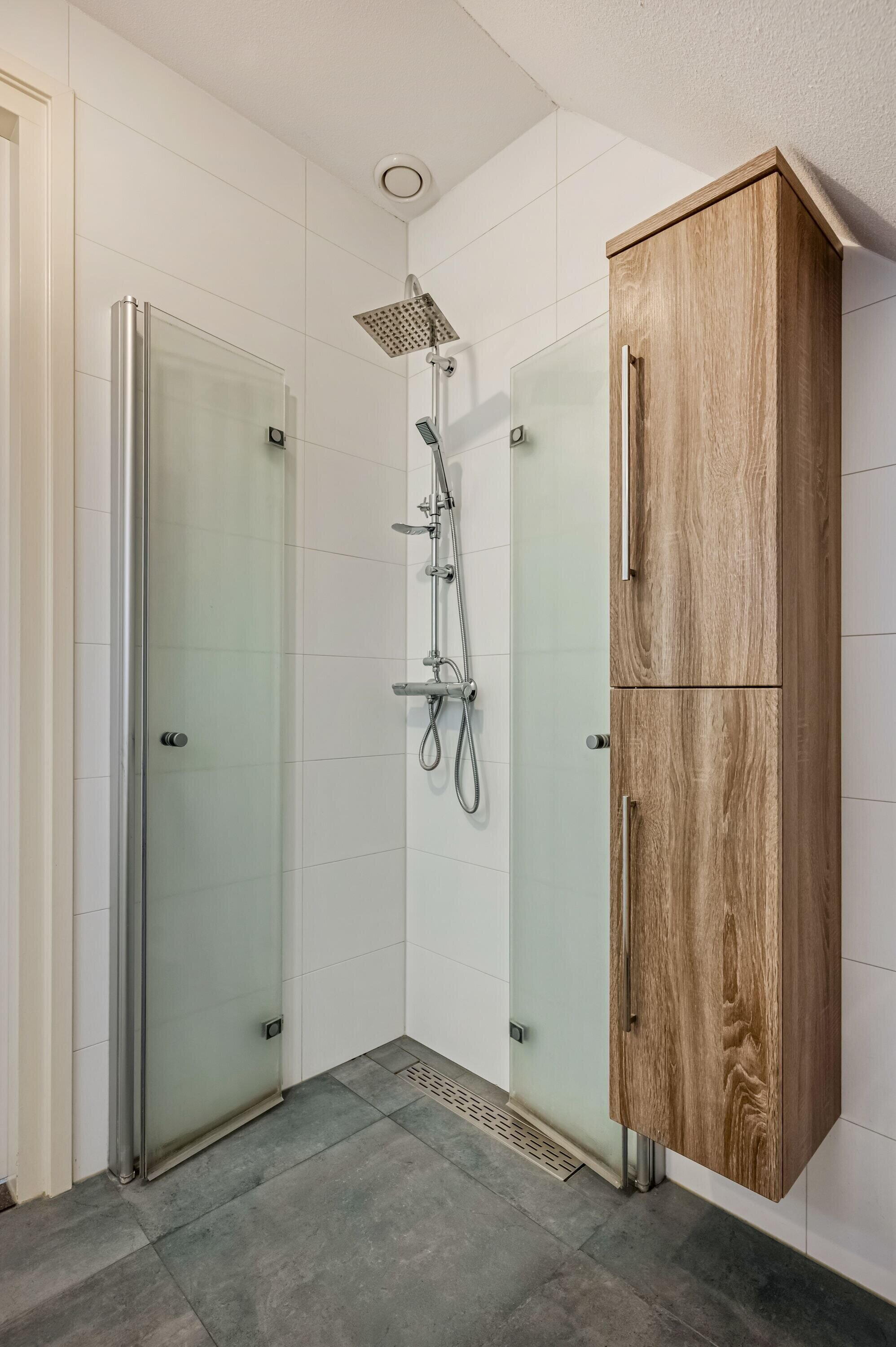 - Inloopdouche, wastafel, en wastafelmeubel